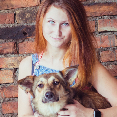 Ольге Олениной (например, кошку с кормом, собаку с препаратом, животное в ветклинике).