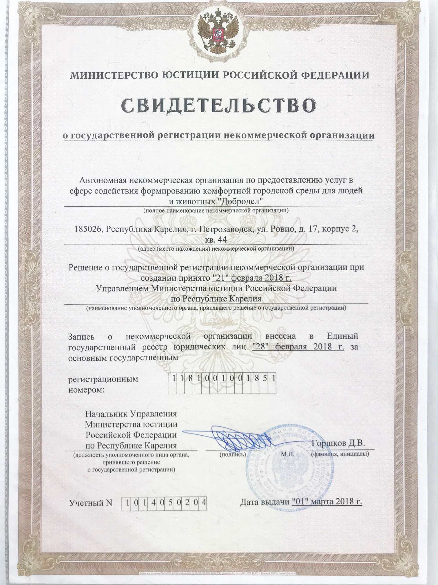 Свидетельство о регистрации НКО (нажмите на изображение для просмотра):